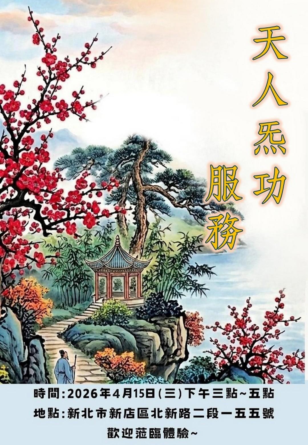 [炁功活動] 天人炁功服務-115.4.15(三) 15:00-17:00 由 tienti55 2026 年 4 月 15 日 作者 tienti55 2026 年 4 月 15 日 27 天人炁功服務-115.4.15(三) 15:00-17:00 上一頁 法華上乘-正宗靜坐複訓班招生-報名截止日期:115.4.15止 新文章 上元龍華加強誦誥-115.4.17-115.5.16