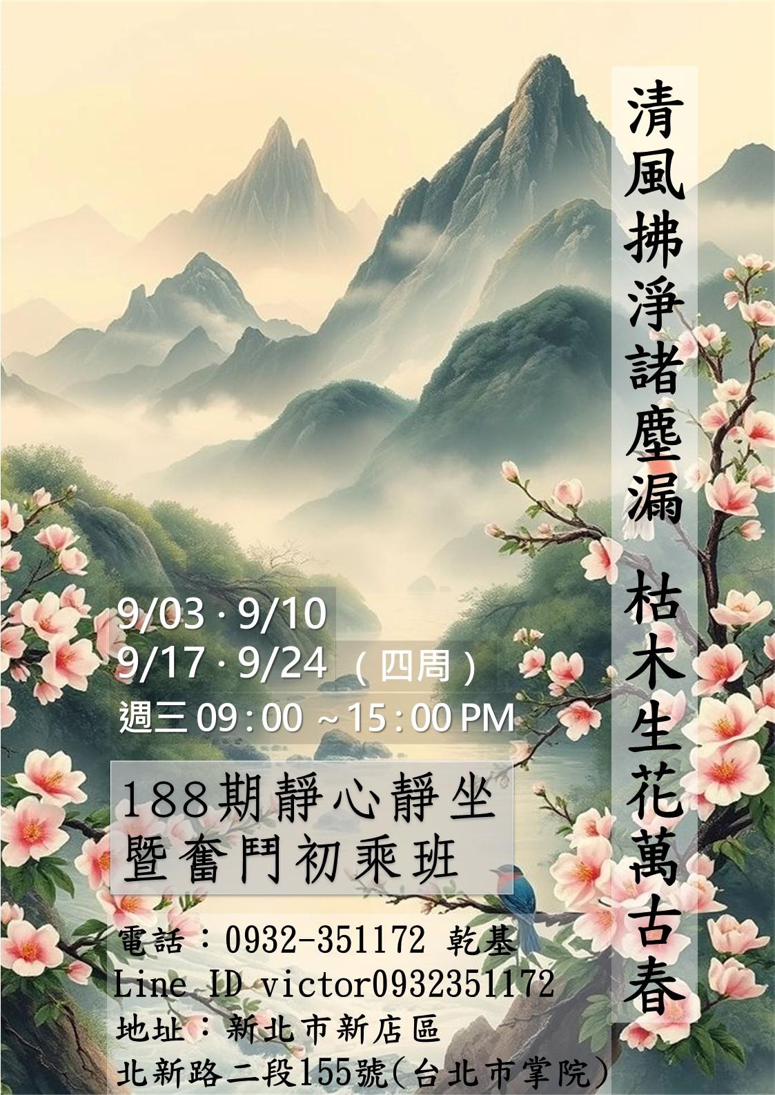 188期靜心靜坐暨奮鬥初乘班開班-114.09.03(三)起四周,每周三 9:00-15:00