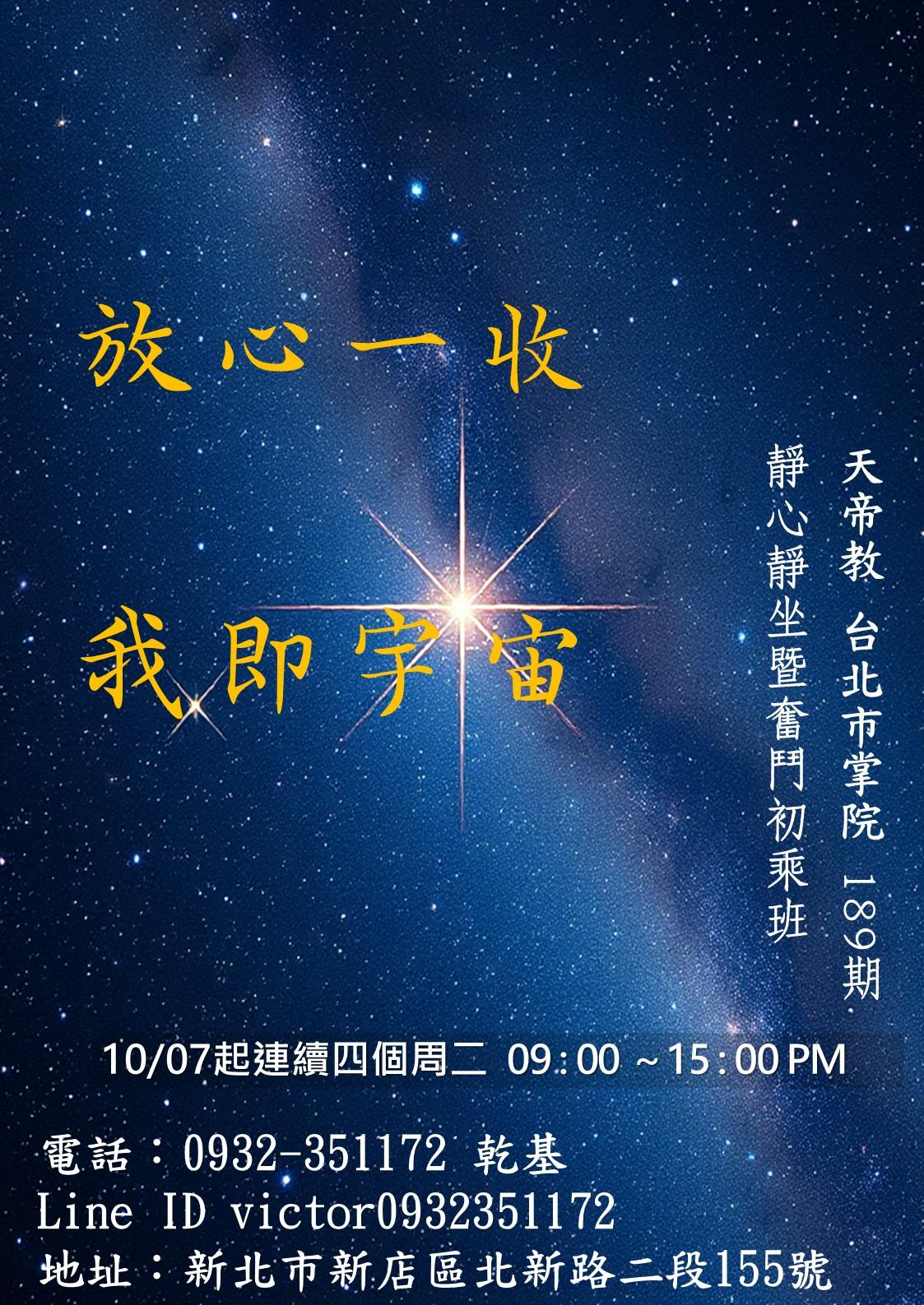 189期靜心靜坐暨奮鬥初乘班開班-114.10.07(二)起四周,每周二 9:00-15:00